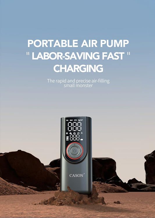 Cason Wireless + Wired (6000 mAh Battery & 12V USB Port) Tyre Inflator for Car,Bike & Cycle,2 x Faster Inflation,Car Electric Air Pump for Tyres Automatic -150 PSI with Powerbank,Air Pressure Pump