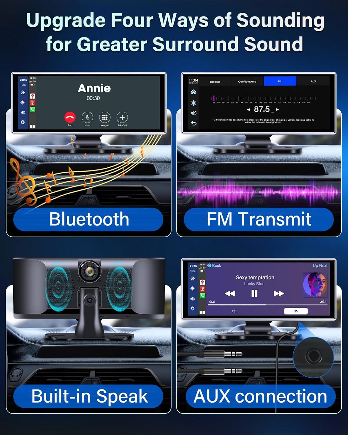 - 4K Advanced Dashcam with Seamless Wifi Connectivity-Our car display screen prioritizes safety and convenience with an integrated 4k dash camera for car. Capture high-resolution footage of the road ahead and your surroundings with the car dash camera front. The wireless portable car android player allows for easy Wi-Fi connectivity, enabling instant downloading and sharing of footage to your smartphone.