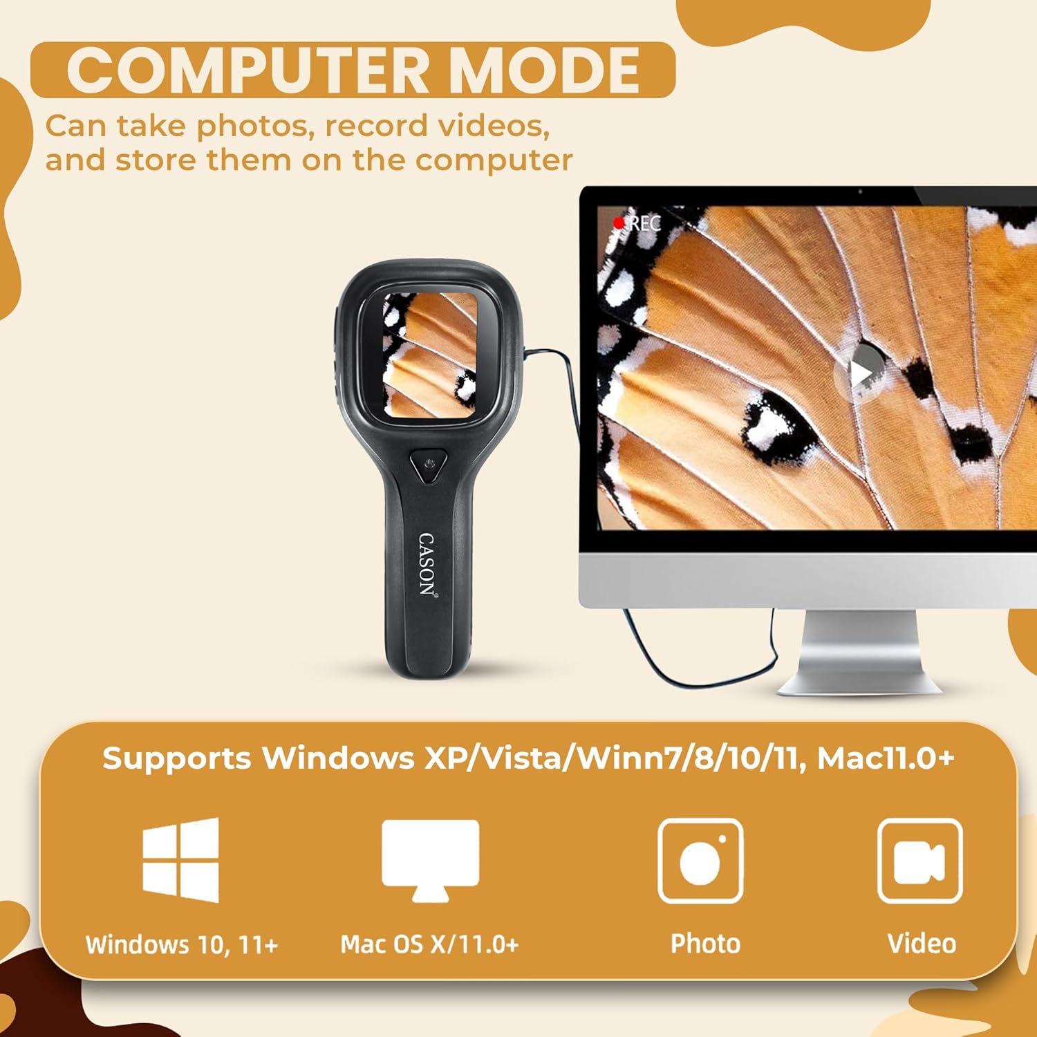 Cason Digital Pocket Microscope for Kids Upto 400X, Portable Handheld Magnifying Glass,Microscope for Students for Interactive Learning