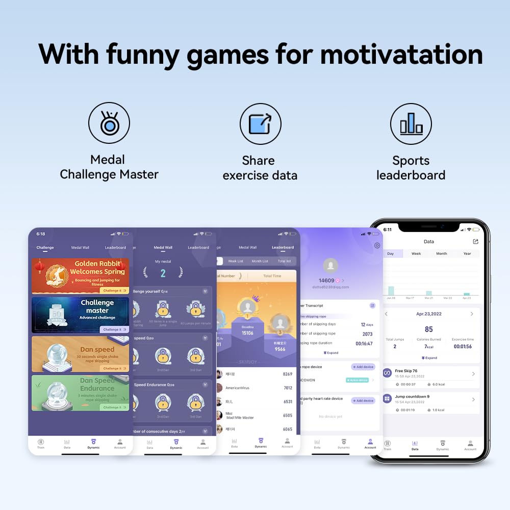 Smart Skipping Rope with Mobile App for Workout Graph, Online Sessions, Skipping Games,