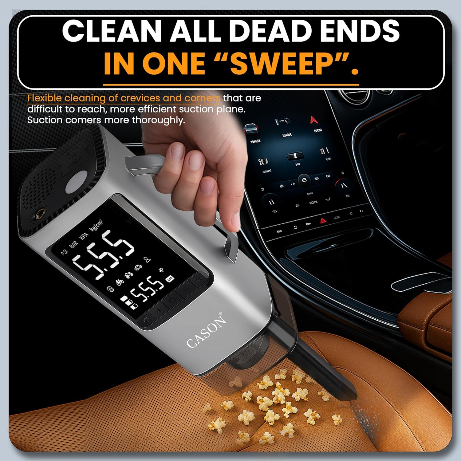 - 5000Pa Strong Suction Vacuum Cleaner for Interior Detailing: Equipped with powerful suction to effectively clean dust, crumbs, pet hair, and debris from car seats, floor mats, and hard-to-reach areas. A compact and efficient cordless vacuum for quick cleanups .