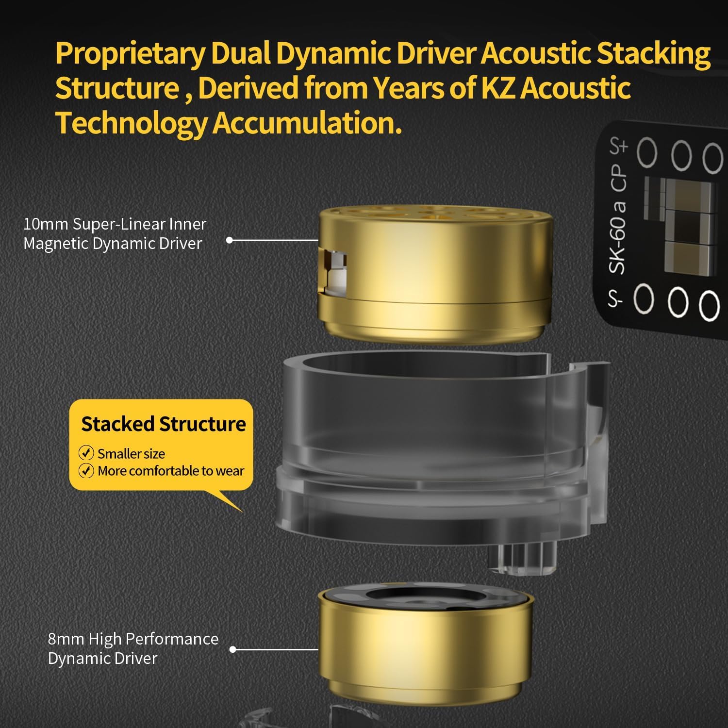 - 1 Dynamic Driver, HIFI Bass Sound-KZ Merga in ear monitor is equipped with one new 10mm dual magnetic circuit dynamic driver unit, tuning focuses on the popular directions. The strong magnetic force enhances the low-frequency density. Restore sound details, bass bursts are more powerful. Rich texture and full of powerful bass