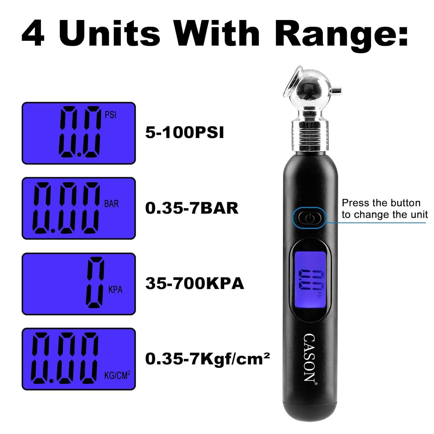Cason Mini Digital Tyre Pressure Gauge for Cars and Bikes | Accurate Tyre Pressure Monitoring with Backlit LCD for Real-Time Readings(Black)