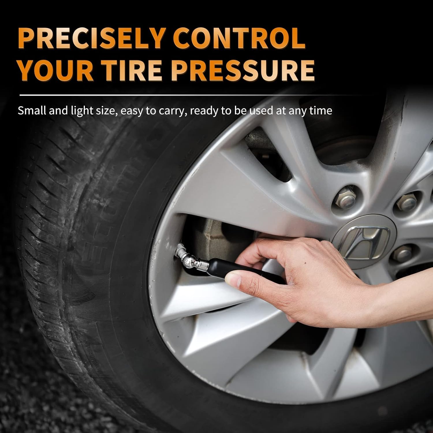 - Mini-Sized Tyre Pressure Gauge β Lightweight & Portable ,this compact tyre pressure monitoring gauge fits comfortably in your pocket, making it easy to carry on the go. Designed with a sleek, ergonomic grip for effortless handling, it's perfect for quick pressure checks anytime.