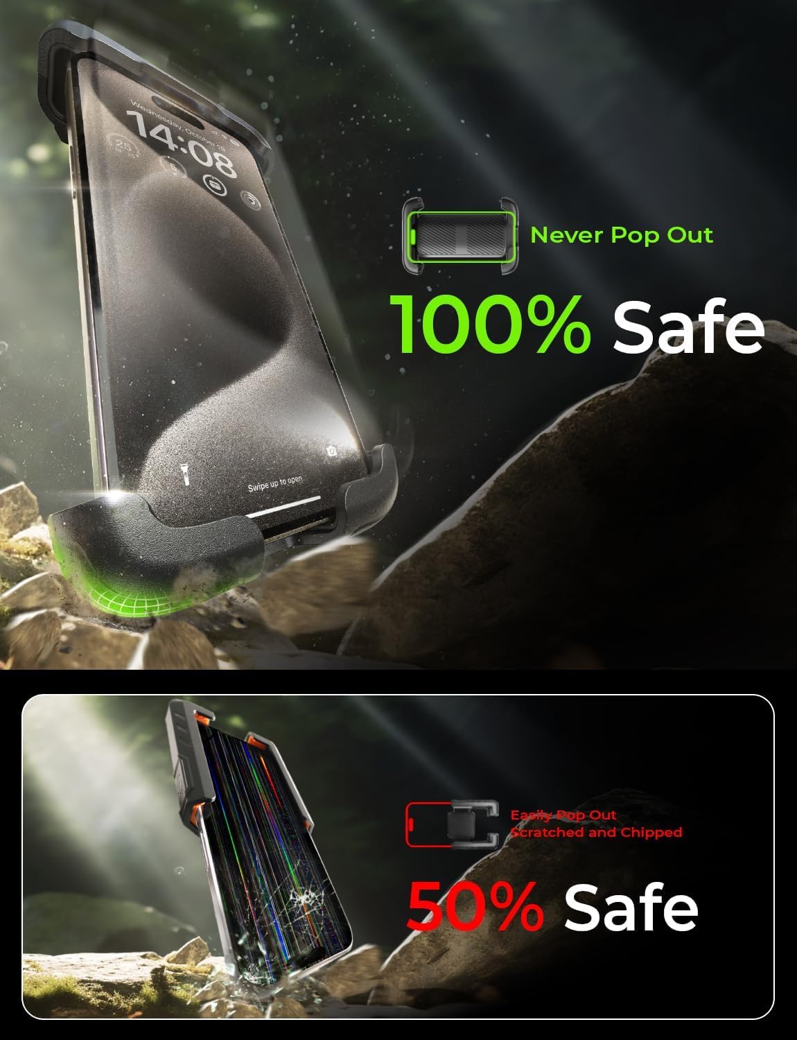- Newest Shockproof Construction - Lastest Bike /Cycle phone mount adopts aluminum alloy handlebar mounting base & double socket arm and anti-vibration silicone,Mobile Holder For Bike has lock switch behind perfectly fixes and wraps the phone firmly, but also can reduce your phone to rattle or shake in the mount during high-speed riding, avoid scraping between the phone and the bracket.