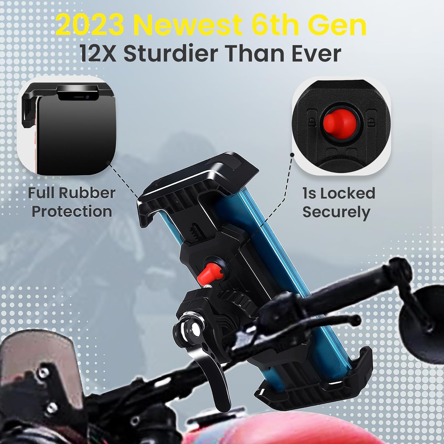 - Newest Shockproof Construction - Lastest Bike /Cycle phone mount adopts aluminum alloy handlebar mounting base & double socket arm and anti-vibration silicone,Mobile Holder For Bike has lock switch behind perfectly fixes and wraps the phone firmly, but also can reduce your phone to rattle or shake in the mount during high-speed riding, avoid scraping between the phone and the bracket.