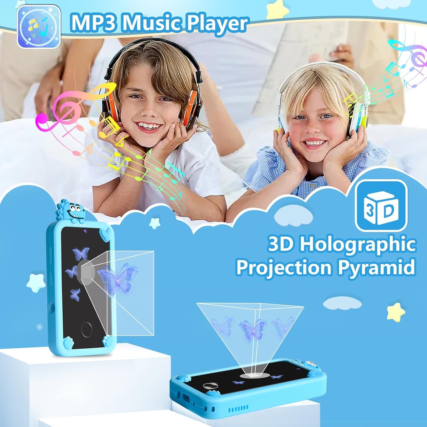 - Dual Cameras - Kids smartphone captures special moments with the front and rear cameras. Kids can Kids choose their favourite frames and mirror effects to take photos and record videos with family or friends. To prevent the loss, kids phone for boys comes with a durable lanyard for easy carrying.
