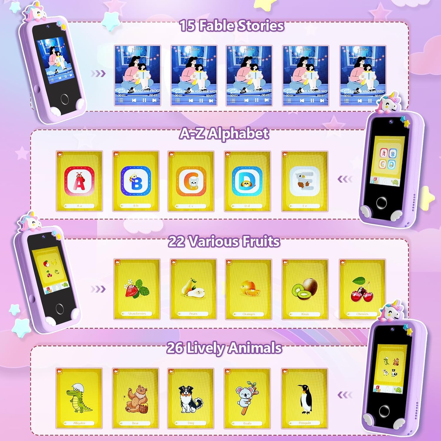 - Interactive Learning Games - This mini iphone for kids packed with 10 educational games, promotes learning through play. Your child can enhance their math, language, and problem-solving skills with engaging, interactive content that adapts to their learning pace. Parental Controls: Set password to prevent children from becoming addicted to games