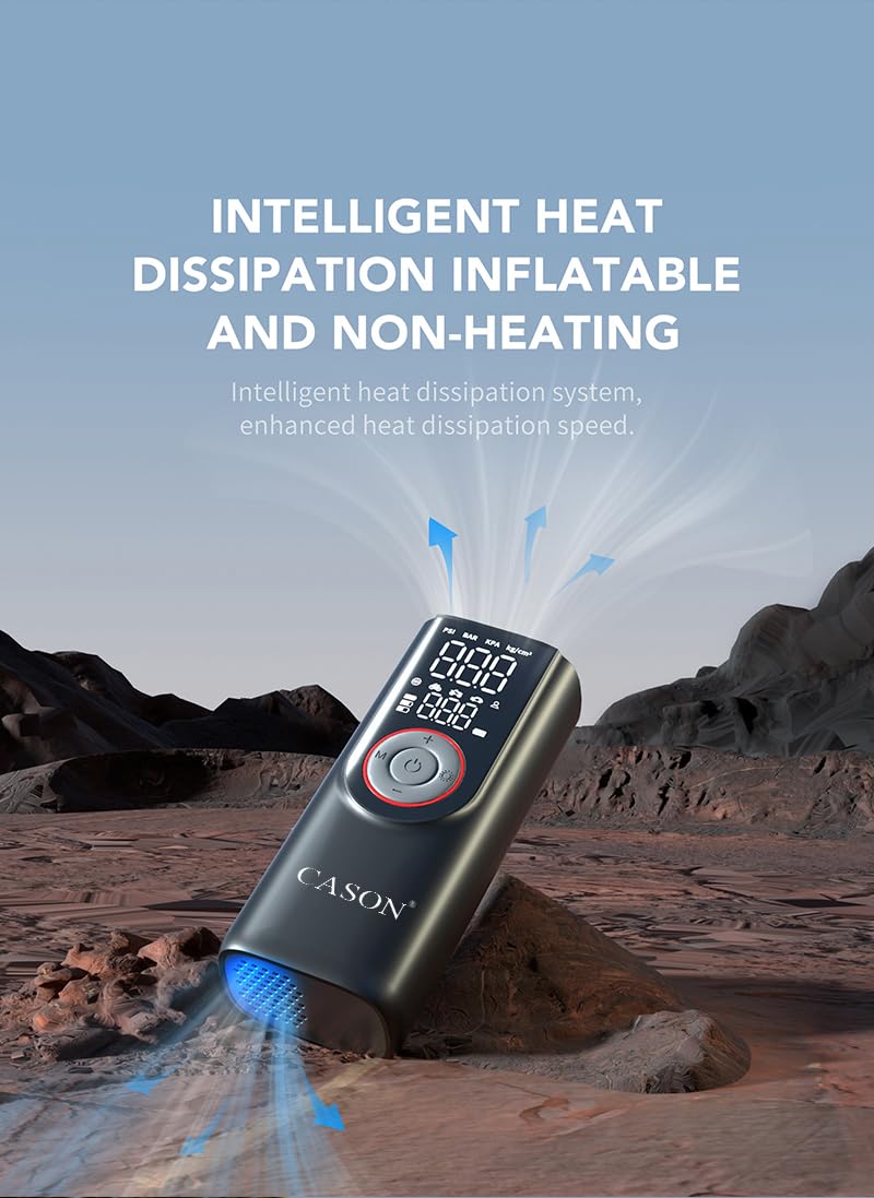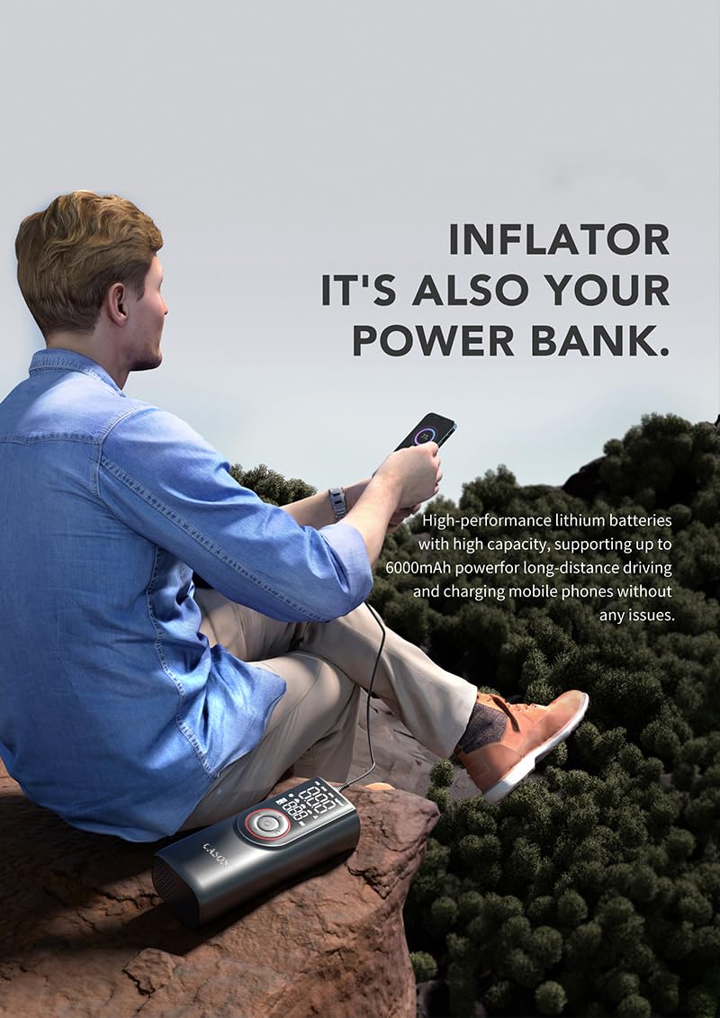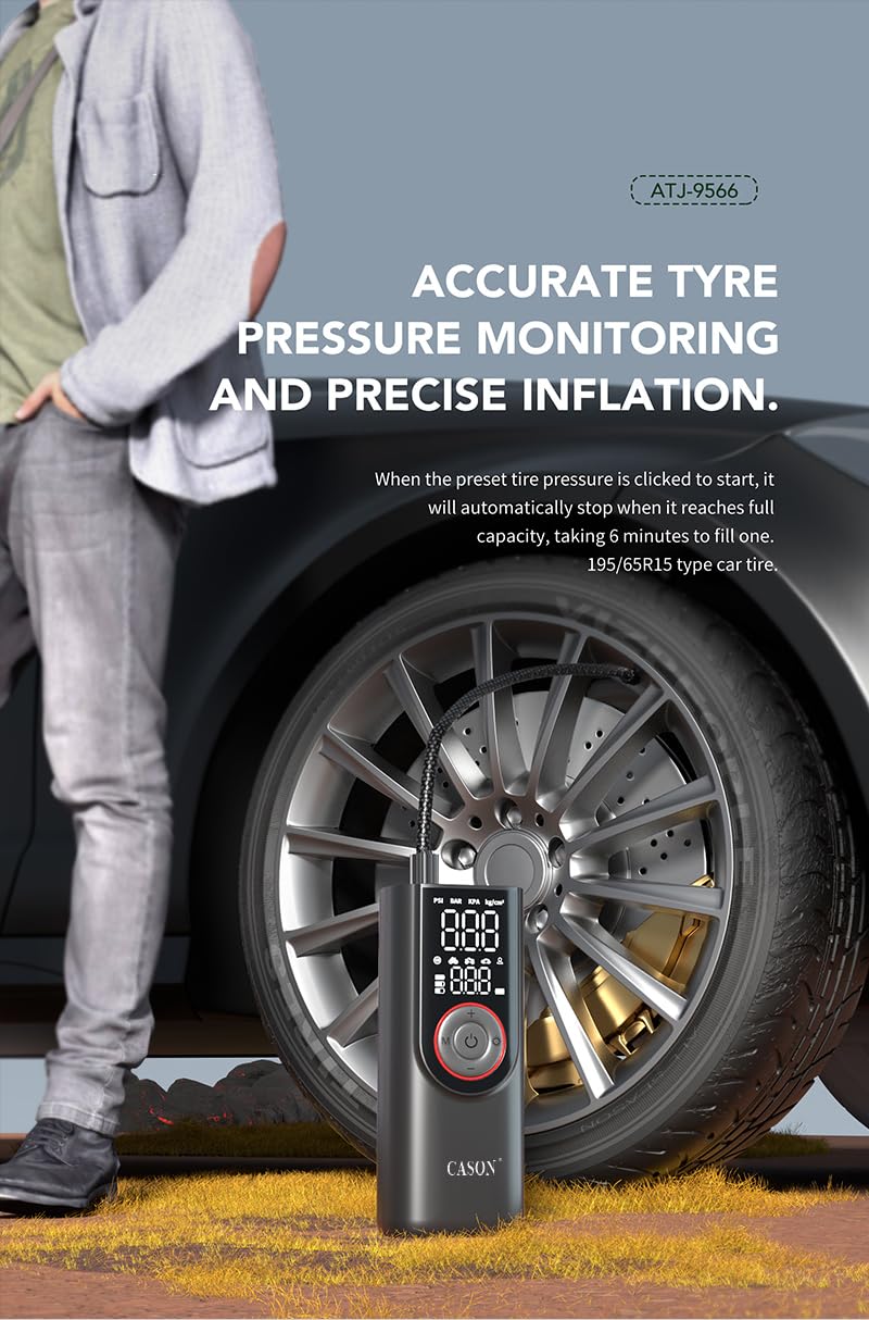 Cason Wireless + Wired (6000 mAh Battery & 12V USB Port) Tyre Inflator for Car,Bike & Cycle,2 x Faster Inflation,Car Electric Air Pump for Tyres Automatic -150 PSI with Powerbank,Air Pressure Pump